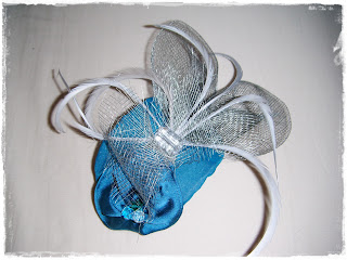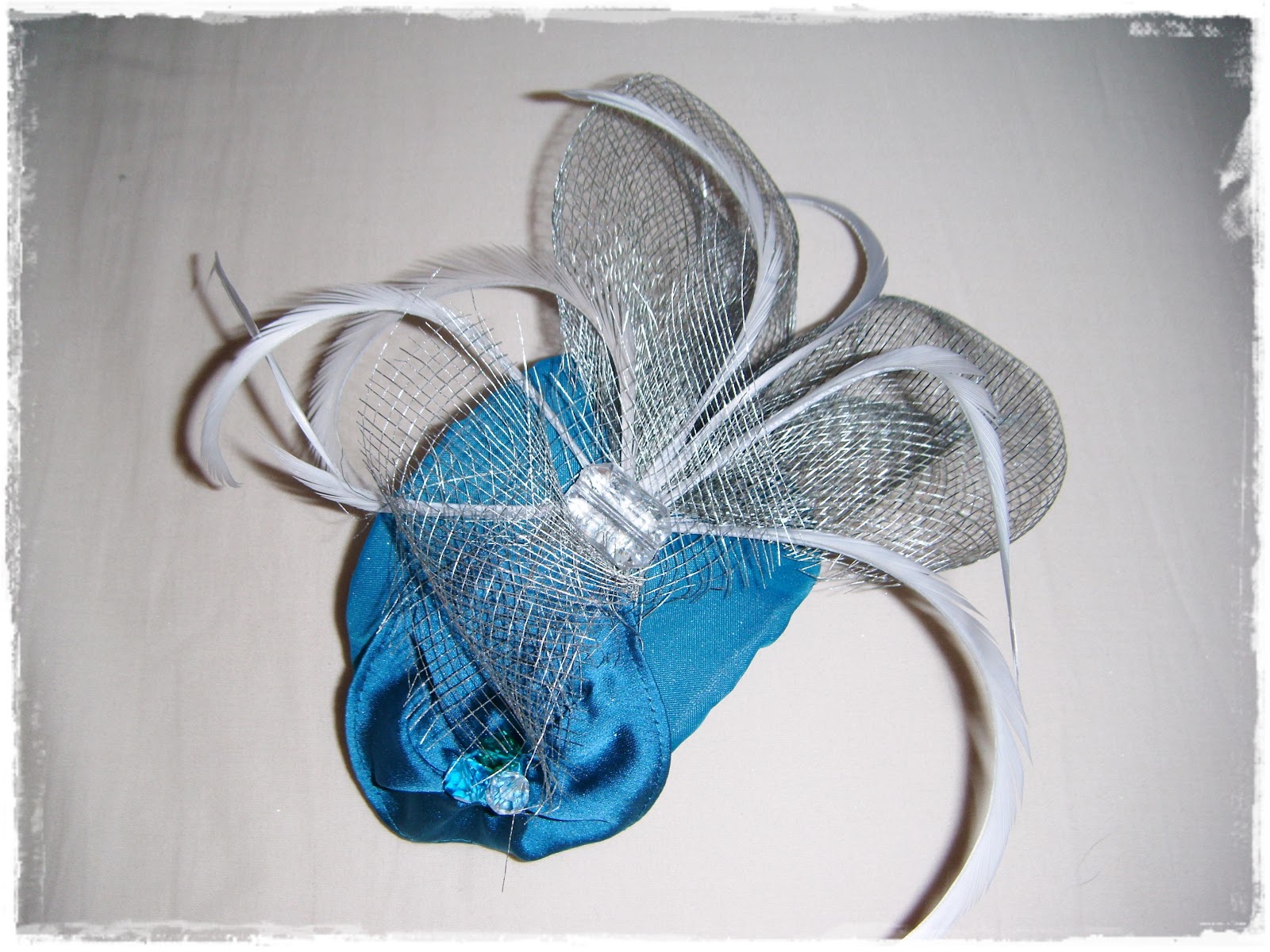 La base es de la misma tela del vestido en color agua marina y los adornos en plata