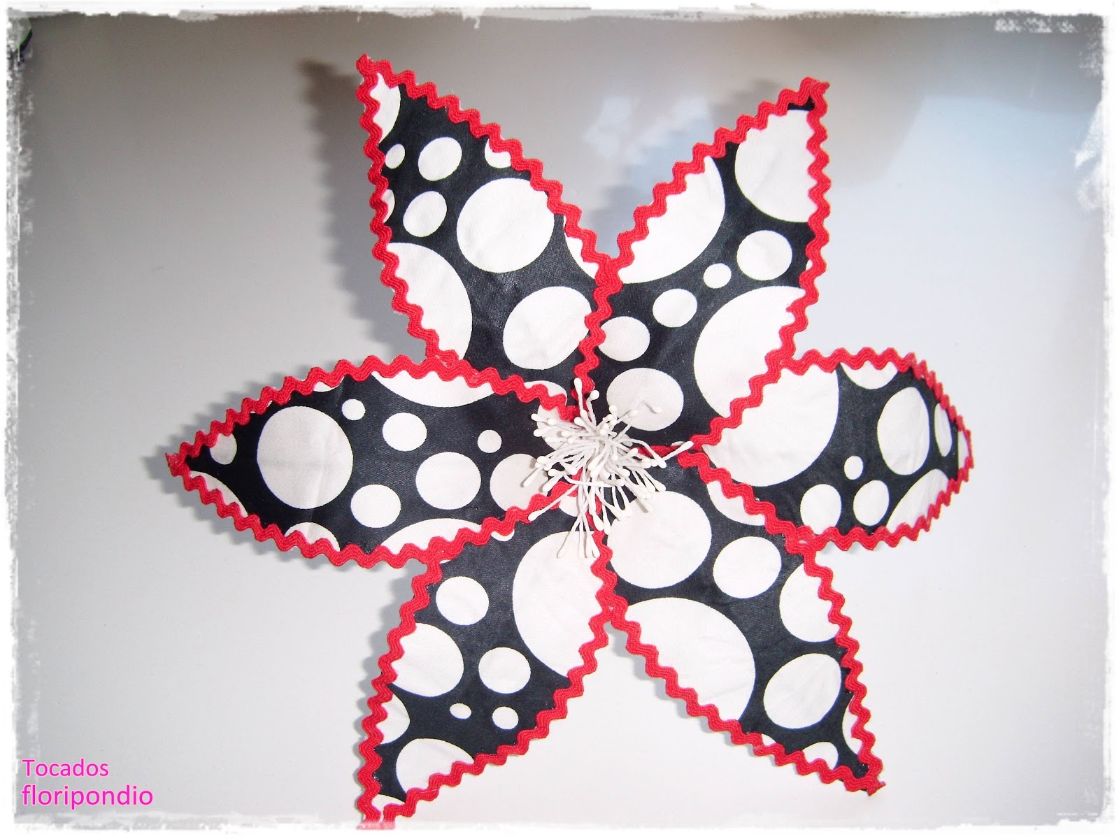| Flor de tela de batista hecha a mano combinando lunares y espampado |