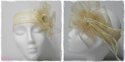 | Casquete de sinamay blanco hecho a mano adornado con flores de plumas |