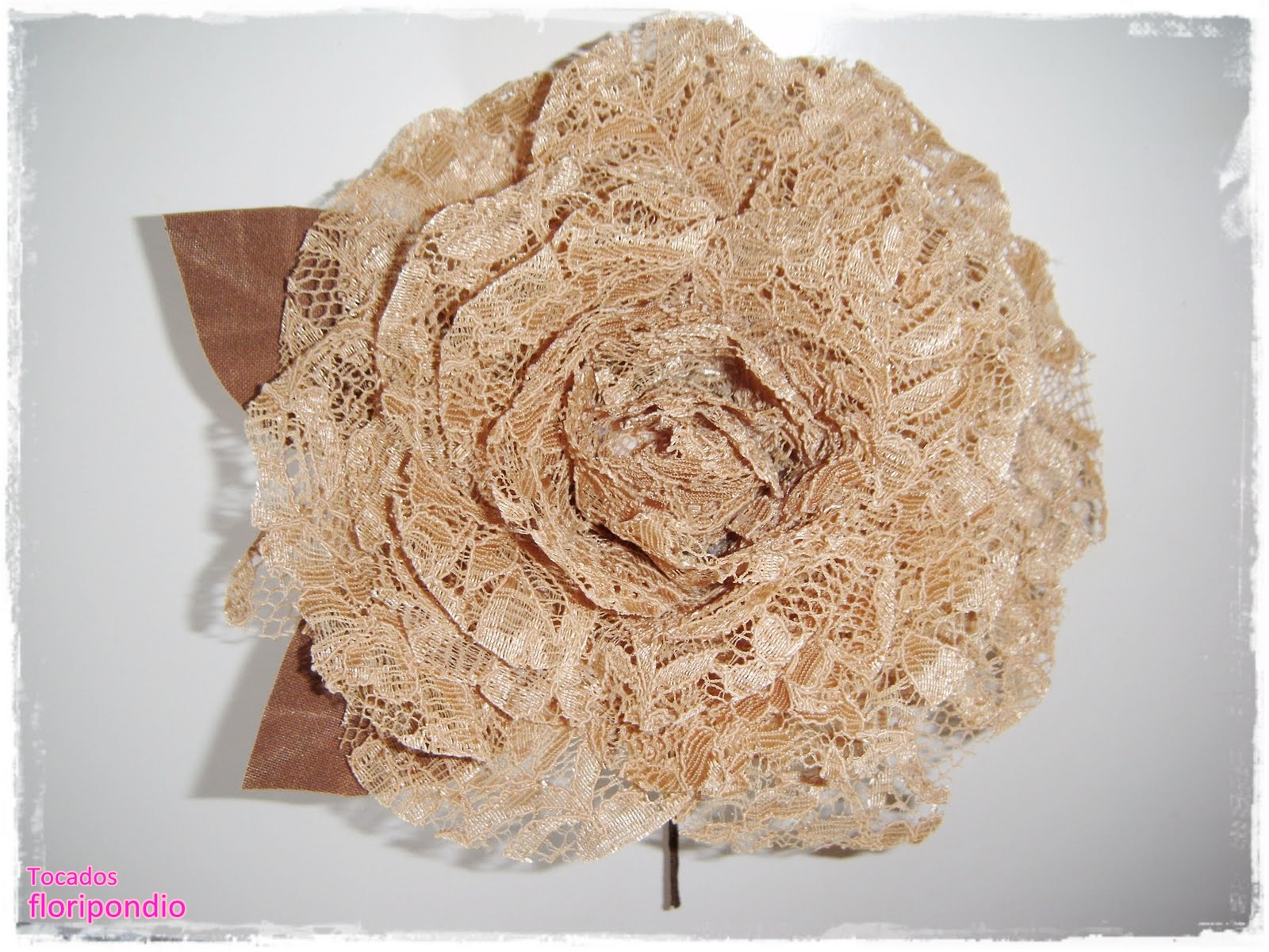 Flor combinando encaje beige y licra camel