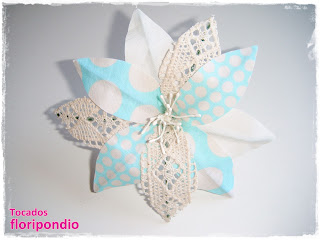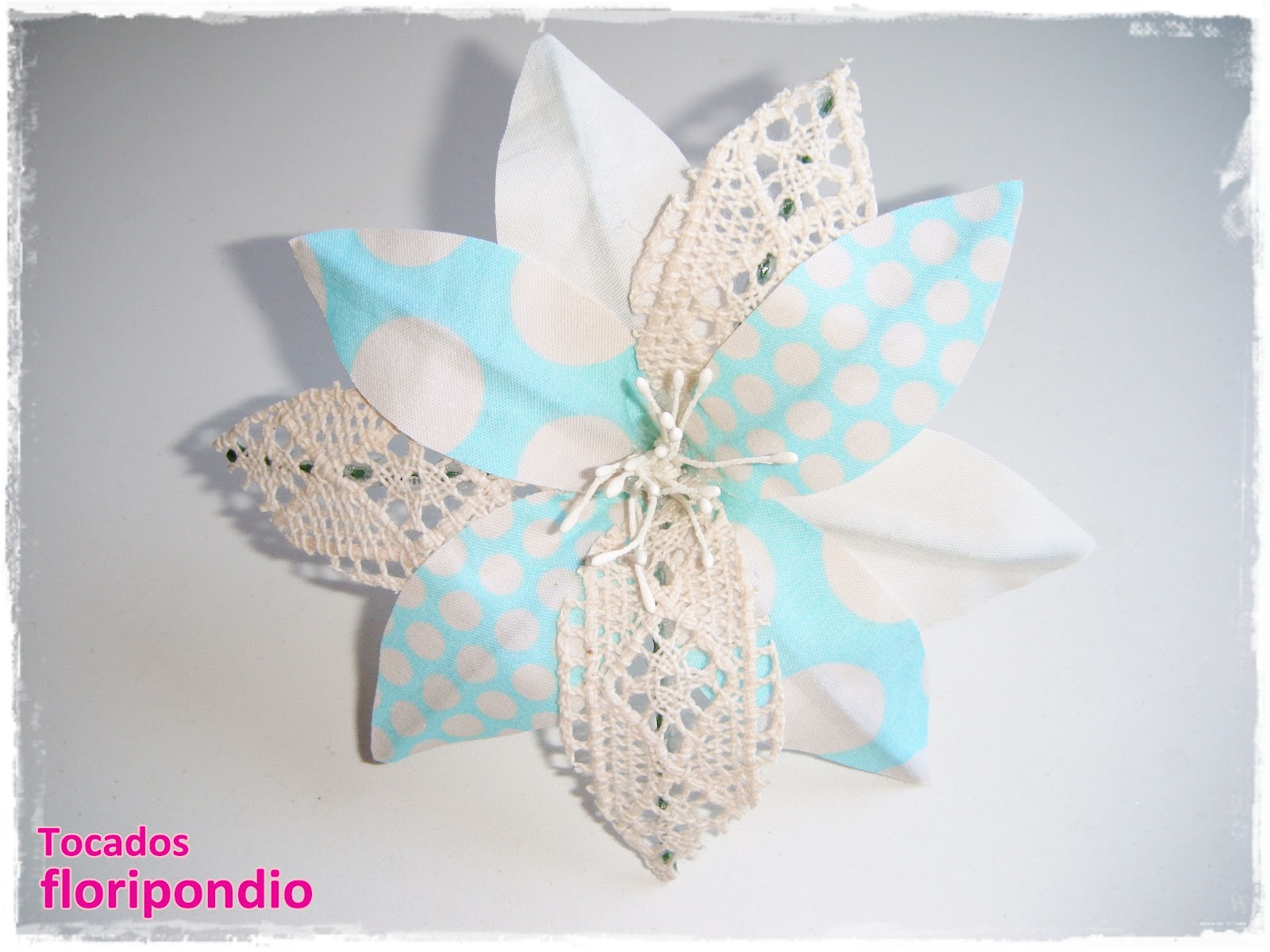 | Flor de niña hecha a mano de picos combinando distintos tipos de lunares y encaje |