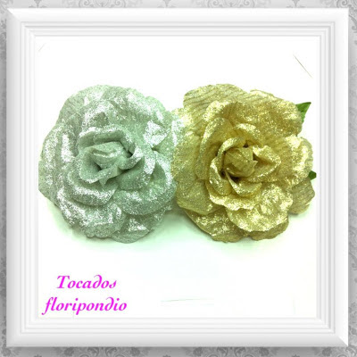 | Flores de flamenca hechas a mano en color oro y plata |